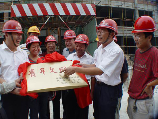 9月19日上午10時30分,為全國青年文明號——徐順福項目部舉行的揭牌儀式,在集團公司總部辦公樓前舉行。 揭牌儀式由市建設局副局長葛繼卿主持,山東省建設廳機關黨委常務副書記張普林,副書記金純龍,團委書記辛平,科長李學雷;共青團濰坊市委副書記李強;濰坊市建設局黨委副書記高峰;集團公司總經理、黨委副書記朱九洲,黨委副書記丁守起,監(jiān)事會主席、紀委書記滕忠斌等出席了揭牌儀式。 在今天的揭牌儀式上,由辛平宣讀住宅和城鄉(xiāng)建設部、共青團中央的命名決定,全國青年文明號——徐順福項目部負責人徐順福做表態(tài)發(fā)言,高峰和張普林分別代表市建設局和省建設廳做了重要講話。 集團公司總部人員,部分基層單位、子公司的代表,各基層單位團組織代表,市建設局系統(tǒng)各單位團組織負責人共200余人參加揭牌儀式。 濰坊電視臺、濰坊日報社、濰坊人民廣播電臺、山東商報等多家媒體記者現(xiàn)場采集新聞。 榮獲全國青年文明號這一榮譽,這在集團公司的歷史上還是第一次。