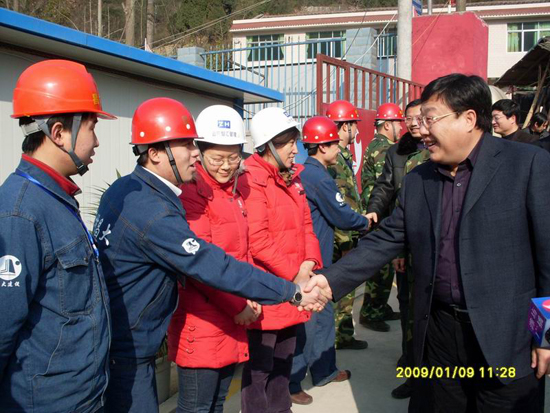 鐘少林視察集團公司援川工程慰問現(xiàn)場人員 (09.01.10)