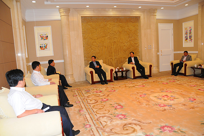 上圖為徐鵬強(qiáng)董事長與夏副市長在交流