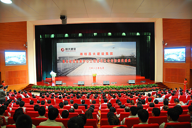 2012年9月29日,秋風(fēng)送爽,丹桂飄香。在這個(gè)金秋收獲的日子里,濰坊昌大建設(shè)集團(tuán)會展中心工程建設(shè)總結(jié)表彰頒獎盛典在魯臺經(jīng)貿(mào)會展中心的會議中心報(bào)告廳隆重舉行。濰坊昌大建設(shè)集團(tuán)全體高管層領(lǐng)導(dǎo)徐鵬強(qiáng)、朱九洲、滕忠斌、李坤明、姜建魯、穆乃杰、張連悅、張學(xué)智、閆鵬、劉雁冰,會展中心工程各參建單位全體參建人員、管理骨干,各分、子公司領(lǐng)導(dǎo)班子成員、管理骨干,集團(tuán)總部全體人員,集團(tuán)駐會展中心工程建設(shè)現(xiàn)場指揮部以及應(yīng)邀參會的安順片區(qū)指揮部、工程設(shè)計(jì)、監(jiān)理、咨詢等有關(guān)單位負(fù)責(zé)人共581人參加了頒獎盛典。應(yīng)集團(tuán)的邀請,濰坊市人民政府副市長夏芳晨出席頒獎活動并作重要講話,市政府副秘書長于為凱,市建設(shè)局局長李廣東、副局長張文等出席上述活動。