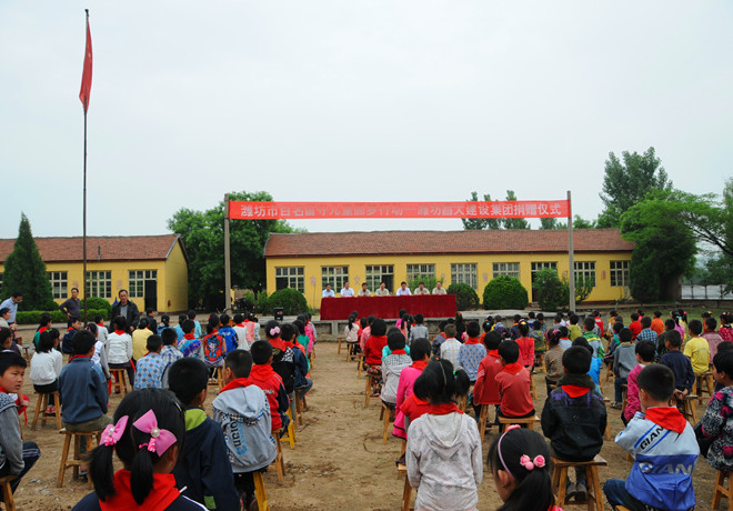 2013年5月29日上午,由裝飾分公司發(fā)起并聯(lián)合第四、第八分公司共同實(shí)施的員工為留守兒童捐建午餐食堂捐贈(zèng)儀式在臨朐縣寺頭鎮(zhèn)春蕾小學(xué)舉行。三個(gè)捐建單位的領(lǐng)導(dǎo)班子成員和員工代表參加了捐贈(zèng)活動(dòng)。集團(tuán)公司對員工自發(fā)組織的這項(xiàng)活動(dòng)給予了充分肯定和積極支持,監(jiān)事會主席、黨委副書記、紀(jì)委書記滕忠斌出席捐贈(zèng)活動(dòng)并在儀式上講話。集團(tuán)公司辦公室副主任、駐臨朐幫扶工作領(lǐng)導(dǎo)小組成員兼臨朐寺頭鎮(zhèn)大崮東村第一書記徐良本,受捐贈(zèng)春蕾小學(xué)的200多名師生參加上述活動(dòng)。捐贈(zèng)儀式由臨朐縣寺頭鎮(zhèn)黨委書記瞿志敏主持。