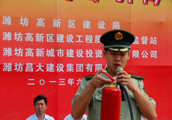 為切實推進(jìn)施工現(xiàn)場消防安全管理,提高全員消防應(yīng)變能力,以實際行動開展好“六月安全月”活動,2013年6月5日上午,集團(tuán)公司在高新區(qū)中央商務(wù)區(qū)施工現(xiàn)場組織了大型消防演練活動。來自各基層單位分管生產(chǎn)的經(jīng)理、工程管理人員,施工現(xiàn)場專職安全員,演練現(xiàn)場三個分公司的全體管理人員和勞務(wù)專業(yè)隊伍,高新區(qū)工程建設(shè)、總承包、監(jiān)理單位以及勞務(wù)分包單位代表等近1000人參加了演練活動。