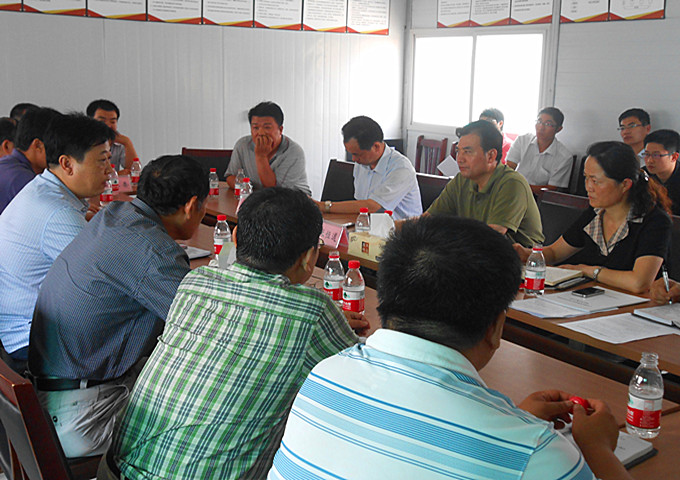 2013年8月6日下午,濰坊濱海經(jīng)濟(jì)開(kāi)發(fā)區(qū)黨工委副書(shū)記、管委會(huì)主任張恒道在濰坊濱海經(jīng)濟(jì)開(kāi)發(fā)區(qū)規(guī)劃局局長(zhǎng)李冰、財(cái)政局局長(zhǎng)宋美亮的陪同下,到集團(tuán)第八分公司正在施工的濰坊濱海城市展覽館工程進(jìn)行調(diào)研,集團(tuán)公司總經(jīng)理朱九洲、總工程師張連悅陪同調(diào)研。         在項(xiàng)目部會(huì)議室,張恒道聽(tīng)取了施工單位、監(jiān)理單位、建設(shè)單位工程建設(shè)情況匯報(bào),對(duì)工程相關(guān)事宜進(jìn)行了現(xiàn)場(chǎng)調(diào)度,以確保該工程按照計(jì)劃進(jìn)行施工。濱海經(jīng)濟(jì)開(kāi)發(fā)區(qū)評(píng)審中心主任張樹(shù)欽、招投標(biāo)中心主任王永光、規(guī)劃局副局長(zhǎng)莊廷祥參加了調(diào)度會(huì)。   上圖為調(diào)度會(huì)現(xiàn)場(chǎng)