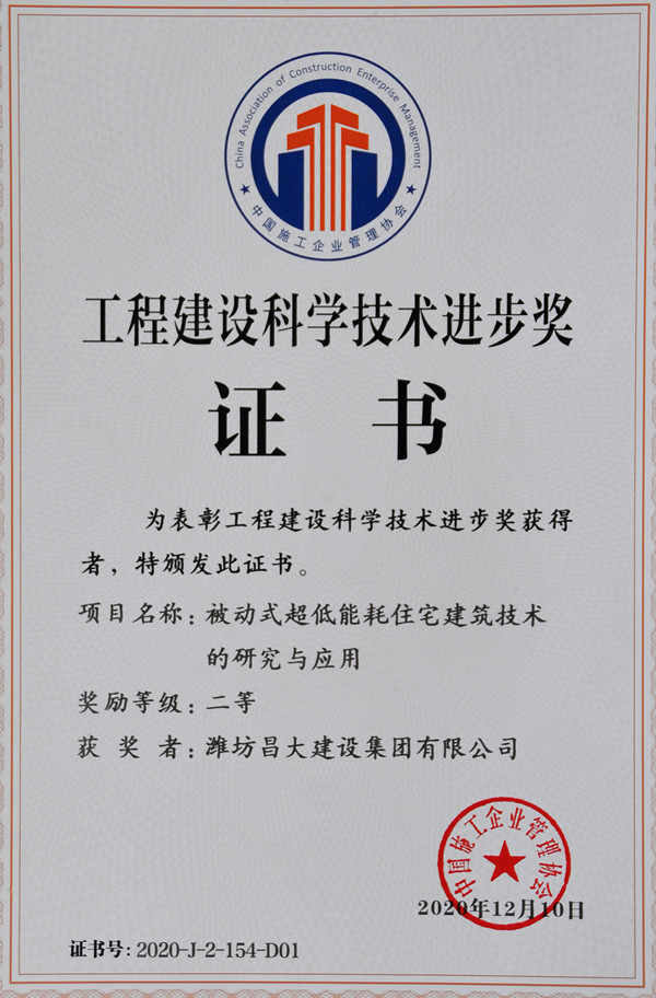 2020年12月11日,中國(guó)施工企業(yè)管理協(xié)會(huì)在北京召開(kāi)“2020年工程建設(shè)科學(xué)技術(shù)獎(jiǎng)勵(lì)大會(huì)”,表彰了工程建設(shè)最高科學(xué)技術(shù)獎(jiǎng)1項(xiàng),工程建設(shè)技術(shù)發(fā)明獎(jiǎng)10項(xiàng),工程建設(shè)科學(xué)技術(shù)進(jìn)步獎(jiǎng)343項(xiàng)。其中,集團(tuán)二建公司工程公司《被動(dòng)式超低能耗建筑住宅技術(shù)的研究與應(yīng)用》,經(jīng)過(guò)形式審查、專(zhuān)家網(wǎng)絡(luò)評(píng)審、專(zhuān)家委員會(huì)會(huì)議評(píng)審、科學(xué)技術(shù)委員會(huì)審定四個(gè)階段(本年度評(píng)審?fù)ㄟ^(guò)率只有40%),最終榮獲工程建設(shè)科學(xué)技術(shù)進(jìn)步獎(jiǎng)二等獎(jiǎng)。![]() |
