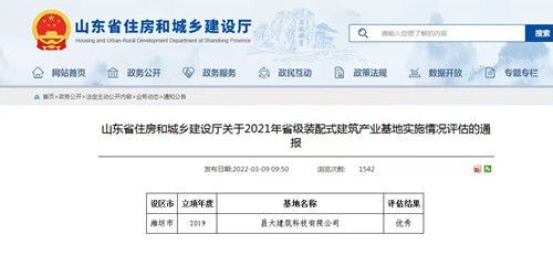 近日,山東省住建廳發(fā)布了《山東省住房和城鄉(xiāng)建設廳關(guān)于2021年省級裝配式建筑產(chǎn)業(yè)基地實施情況評估的通報》。山東省共有121家產(chǎn)業(yè)基地通過評估,其中,省級現(xiàn)場評估的44家產(chǎn)業(yè)基地中,昌大建筑科技有限公司等12家產(chǎn)業(yè)基地評估結(jié)果為“優(yōu)秀”。