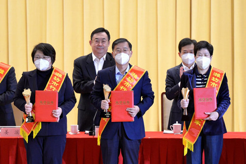 徐鵬強(qiáng)董事長(zhǎng)出席全市工作動(dòng)員大會(huì)并領(lǐng)受行業(yè)領(lǐng)軍企業(yè)家榮譽(yù)稱號(hào)獎(jiǎng)杯證書(shū)