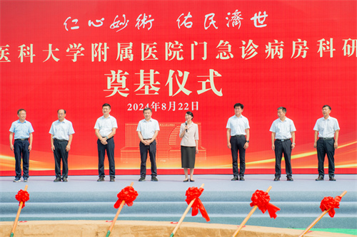2024年8月22日上午,山東第二醫(yī)科大學(xué)附屬醫(yī)院門急診病房科研綜合樓項(xiàng)目舉行奠基儀式。濰坊市副市長、市政府黨組成員、奎文區(qū)委書記周俊出席儀式。出席儀式并在主席臺就位的領(lǐng)導(dǎo)和嘉賓還有:山東第二醫(yī)科大學(xué)黨委副書記、校長管英俊,濰坊市人民政府副秘書長張勇,市住建局黨組書記、局長、一級調(diào)研員馬冰,市衛(wèi)生健康委員會黨組書記、主任、市中醫(yī)藥管理局局長張曉乙,奎文區(qū)人大常委會黨組書記、主任李光明,附屬醫(yī)院已退休原院長胡溫庭,濰坊天鵬建設(shè)監(jiān)理有限公司董事長林少杰,奎文區(qū)委常委、辦公室主任、統(tǒng)戰(zhàn)部部長陳國璽,奎文區(qū)政府黨組成員、副區(qū)長周曉東,山東第二醫(yī)科大學(xué)黨委委員、副校長、附屬醫(yī)院黨委書記王承高,附屬醫(yī)院黨委副書記、院長鄧愛軍。奎文區(qū)大虞街道黨工委書記朱春雷出席奠基活動。集團(tuán)公司董事長徐鵬強(qiáng)、總裁朱九洲出席儀式并在主席臺就位。集團(tuán)參與項(xiàng)目的總承包單位、施工單位領(lǐng)導(dǎo)班子成員和員工代表參加儀式。