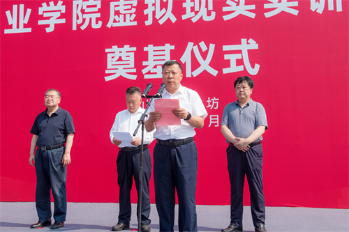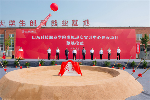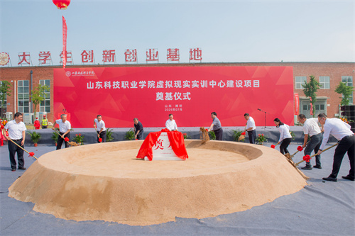 2025年7月17日上午,山東科技職業(yè)學(xué)院虛擬現(xiàn)實(shí)實(shí)訓(xùn)中心項(xiàng)目奠基儀式在項(xiàng)目現(xiàn)場(chǎng)隆重舉行。學(xué)院黨委書記鄭德前,集團(tuán)公司總裁朱九洲,山東省工程咨詢?cè)狐h組成員、副院長(zhǎng)何健,山東建筑大學(xué)設(shè)計(jì)集團(tuán)有限公司董事長(zhǎng)、總經(jīng)理李端杰,招商銀行濰坊分行黨委書記、行長(zhǎng)潘兆強(qiáng),學(xué)院黨委委員、紀(jì)委書記秦建坤,學(xué)院黨委委員、副校長(zhǎng)徐曉雁、董傳民,學(xué)院副校長(zhǎng)張振東出席奠基儀式。