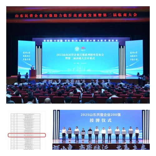 2025年8月19日,2025山東民營(yíng)企業(yè)百?gòu)?qiáng)系列榜單發(fā)布會(huì)暨第二屆臨商大會(huì)開幕式在臨沂市舉行。集團(tuán)公司副總裁劉雁冰參會(huì)并代表集團(tuán)領(lǐng)獎(jiǎng)。省人大常委會(huì)副主任,省工商聯(lián)主席、省總商會(huì)會(huì)長(zhǎng)王隨蓮,臨沂市委書記張寶亮分別致辭,省委統(tǒng)戰(zhàn)部副部長(zhǎng)、省工商聯(lián)黨組書記張?chǎng)H等與會(huì)領(lǐng)導(dǎo)為上榜企業(yè)代表頒牌,省工商聯(lián)黨組成員、副主席陸怡發(fā)布系列榜單,省工商聯(lián)副主席郭建禮發(fā)布分析報(bào)告。