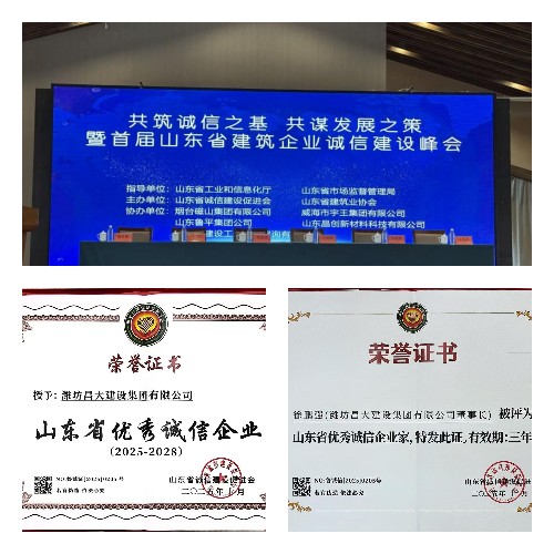 集團(tuán)榮獲首屆山東省優(yōu)秀誠信企業(yè)稱號 董事長徐鵬強(qiáng)被評為山東省優(yōu)秀誠信企業(yè)家